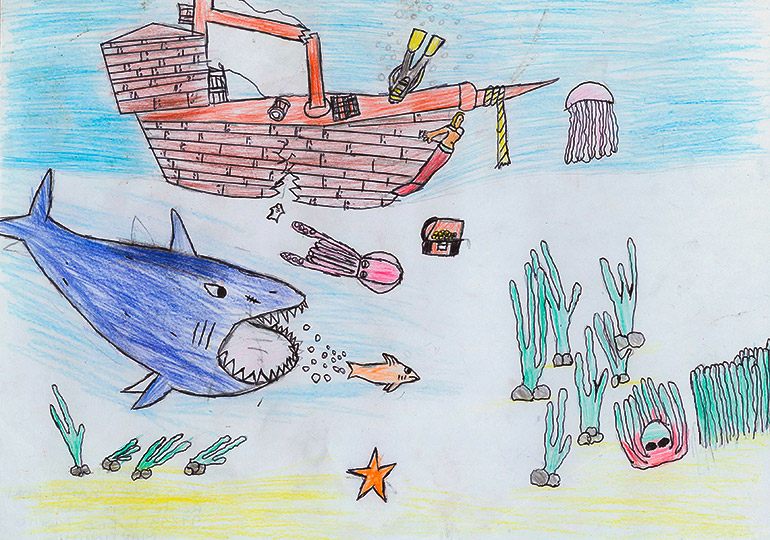 Vous avez été nombreux et nombreuses à participer au concours de dessins d’Images Doc. Voici les 5 gagnants ! 🦈