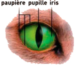 La pupille est le trou par lequel la lumière pénètre dans l’oeil. La nôtre est ronde, mais celle du chat est allongée (voir ci-contre).