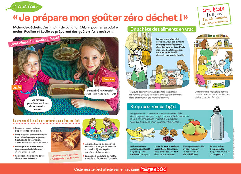 “Le club écolo, je prépare mon goûter zéro déchet !”, Images Doc n°378, juin 2020. Textes : Nathalie Tordjman. Illustrations : Claire de Gastold. Photo : Marion Robin.